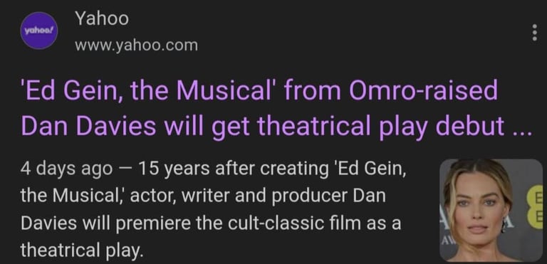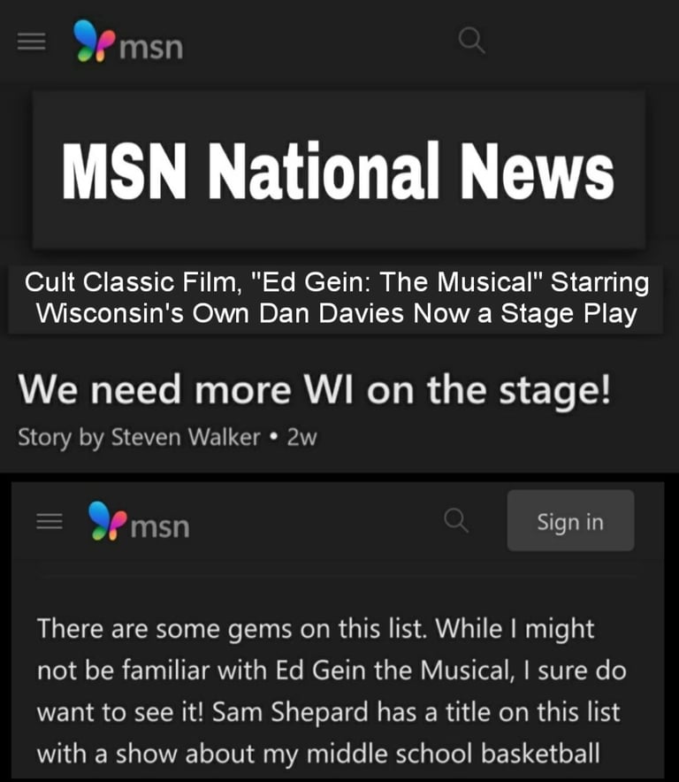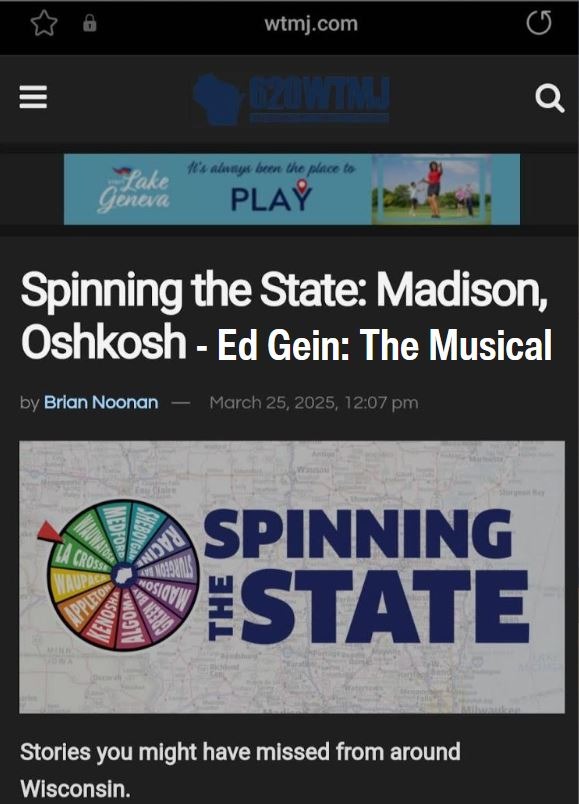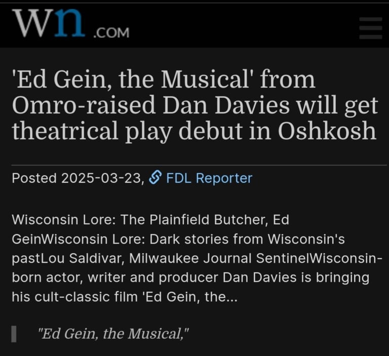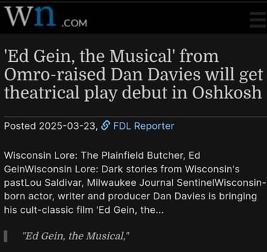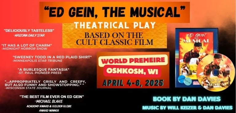 Join us for the April 2025 premiere of Ed Gein, the Musical in Oshkosh.