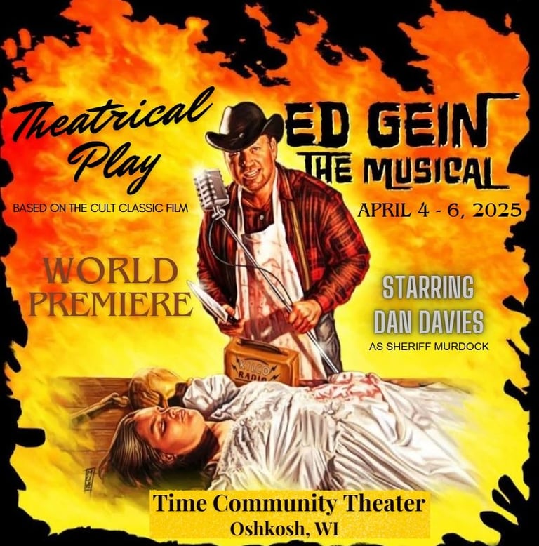 Join us at the Time Community Theater in Oshkosh, WI for the world premiere of Ed Gein, the Musical from April 4th to 6th, 2025.